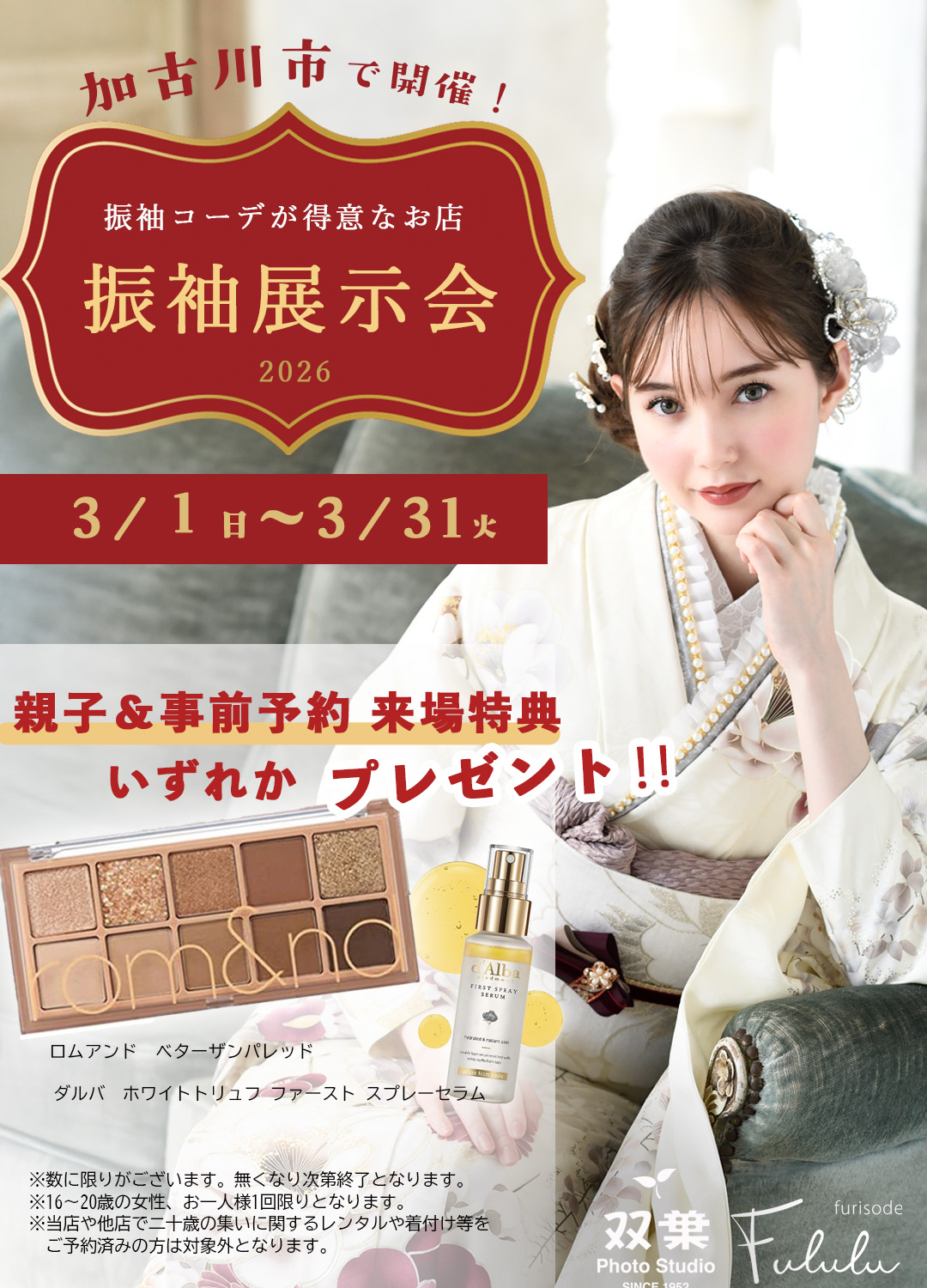 開催場所 兵庫県加古川市加古川町北在家2554  写真の双葉3F 振袖フルル